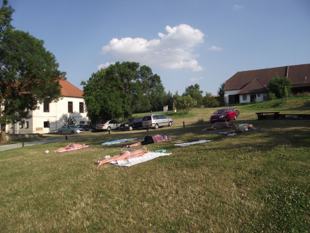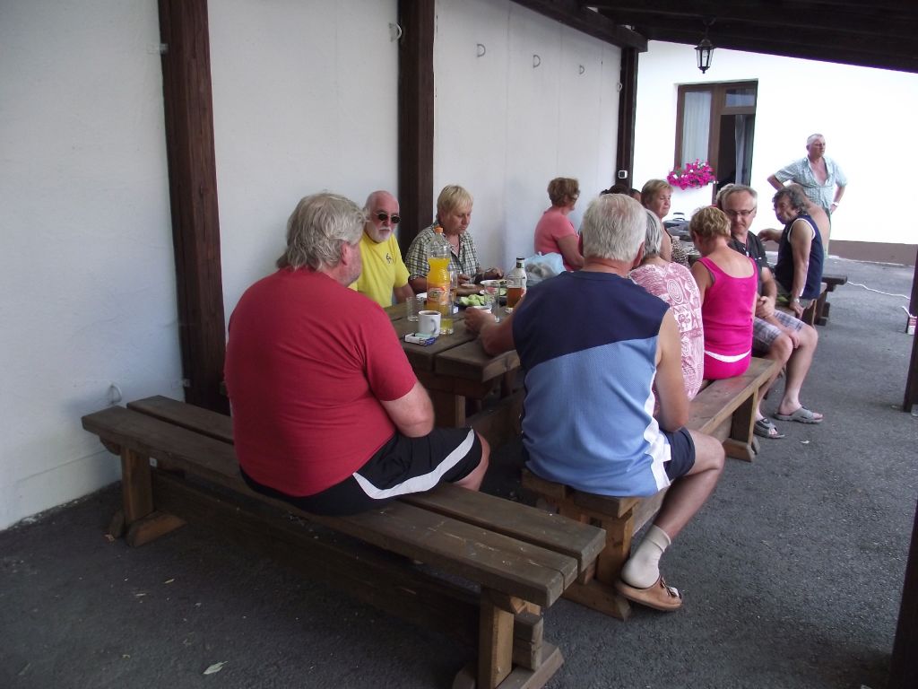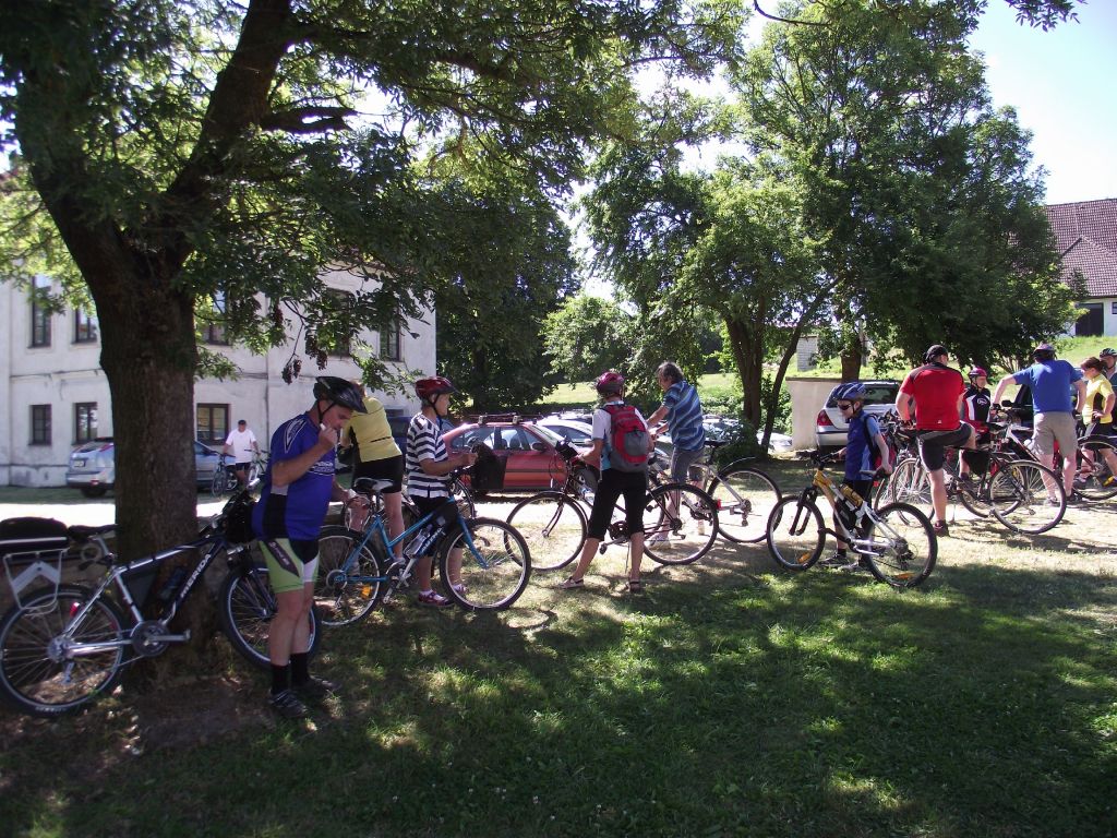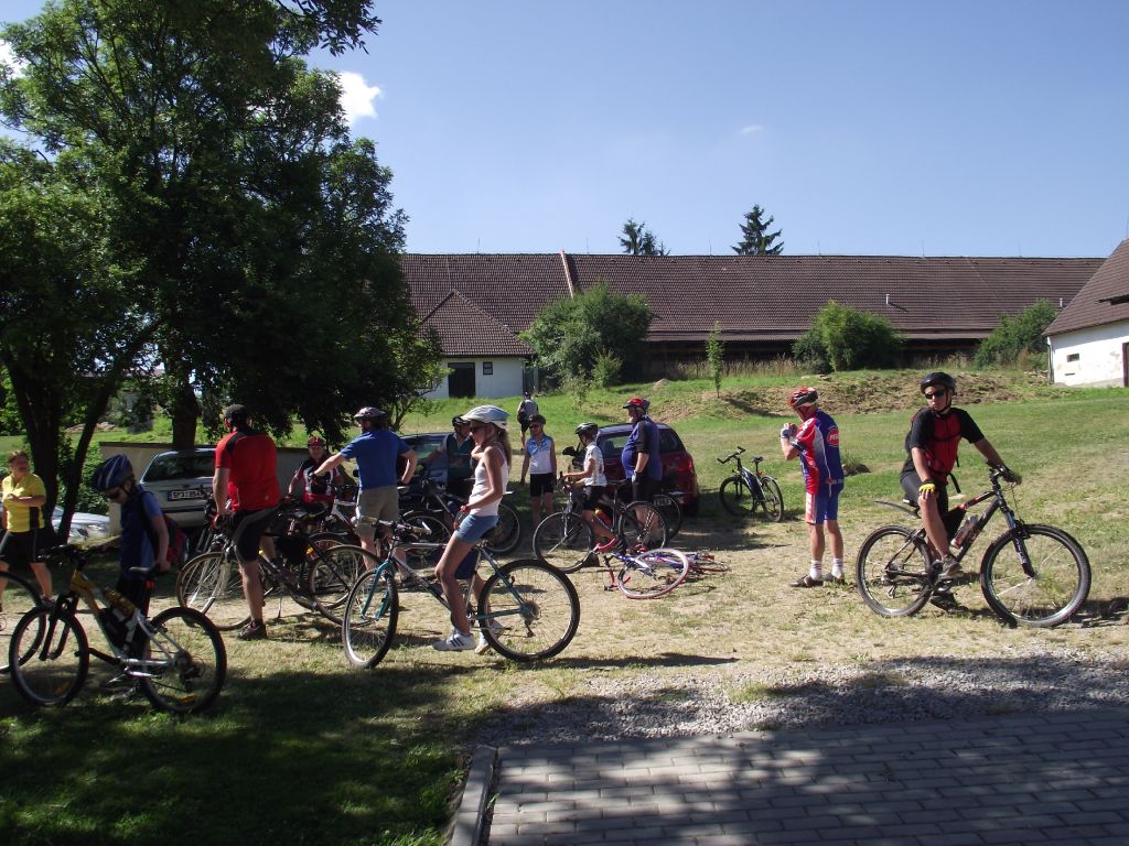 Již tradičně jsme v od 22. 7. do 29. 7. uskutečnili letní soustředění našeho klubu cyklistů. Celkem nás jelo 33 lidiček. Byl s námi i jeden člen, který si předtím zlomil nohu v kotníku. Ten se mimo jiné vyřádil v i invalidním vozíku a myslím, že si soustředění v rámci možností docela užil. Letos jsme byli ve Strážovicích u Mirotic což bylo necelých 70km od nás. Byli jsme ubytováni v areálu zámku v ubytovně, která byla předělána z bývalých chlévů. Toto byla letos výhoda, jelikož v tom horku tam bylo příjemně. Pokoje byly nově zařízené a byli vybavené toaletou a sprchou. Mněli jsme k dispozici kuchyň a přilehlou společenskou místnost, která byla mimo jiné vybavena pípou s chlazením. Takže jsme si sami točili pivo. Pár piv jsme za ten horký týden vypili. Výhodou bylo, že jsme mněli celý areál k dispozici pouze my, takže jsme mohli využívat hřiště, hrát ping-pong, basket anebo lenošit pod pergolou. Mimo jednoho dne byl každý den výjezd na kolech. Kdo chtěl, mohl jet nebo se mohl jet vykoupat do bazénu či rybníku, kterých zde bylo dosti. Trasy byli pečlivě vybíráni a byli různě dlouhé od 18km až po 35km.Vedli pěknou přírodou a částečně i ve stínu což bylo příjemné. Zde patří poděkování Karlu Hajžmanovi, který trasy připravoval, a pak se večer konzultovali s ostatními členy, aby věděli, co je čeká, když pojedou. Na každé cestě bylo v půli trasy občerstvení v nějaké hospůdce. Výlety na kolech byli příjemné i v tom, že nejsme polykači kilometrů, ale jezdíme pro radost. Na každém větším kopci čelo "pelotonu" zastavilo a čekalo se, až dojedou všichni a po oddychu se pokračovalo dál. Takže se nikdo neobával, že mu někdo ujede či že mu v případě defektu nikdo nepomůže. To se nemůže stát, jelikož jsme "řekl bych" skvělá parta. Letos byl pouze jediný defekt a to píchlé kolo, které se po dojezdu na ubytování opravilo. Ucházelo pomalu, tak že se vždy dofukovalo. Již tradičně bylo ve čtvrtek velké grilování (krkovička a kuřecí řízky) a v pátek přijel Láďa Čagánek a byla zpívaná. Za sebe můžu říci, že to byla opět pěkné soustředění ne-li jedno z nejlepších. Už se těším na příští rok.